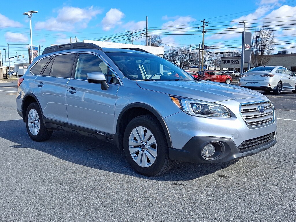 Clean CARFAX. Outback 2.5i Premium *PROFESSIONALLY DETAILED INSIDE AND OUT* *NEW OIL AND FILTER CHANGE*.Ice Silver Metallic 2015 Subaru Outback2.5i PremiumAWD CVT Lineartronic 2.5L 4-Cylinder DOHC 16V CLICK TO LEARN MORE. Odometer is 72783 miles below market average! 25/33 City/Highway MPGAwards: * ALG Residual Value Awards Residual Value Awards * 2015 IIHS Top Safety Pick+ Top Safety Pick+ * 2015 KBB.com 10 Best All-Wheel Drive Vehicles Under $25000 * 2015 KBB.com 10 Most Comfortable Cars Under $30000 * 2015 KBB.com 15 Best Family Cars * 2015 KBB.com Brand Image Awards * 2015 KBB.com Best Resale Value Awards * 2015 KBB.com 5-Year Cost to Own AwardsPlease call us today; to schedule a test drive or get more information on the vehicle of your choice.Reviews: * If you like going off-road to hike snowshoe fish kayak ski snowboard bike canoe camp spelunk or rock climb you might already have a Subaru Outback parked in your driveway. The good news is that the Outback SUV is just as good in town as it is on the trail. Source: KBB.com * Spacious and comfortable interior; efficient engines; excellent visibility; above-average off-road ability; top safety scores. Source: Edmunds